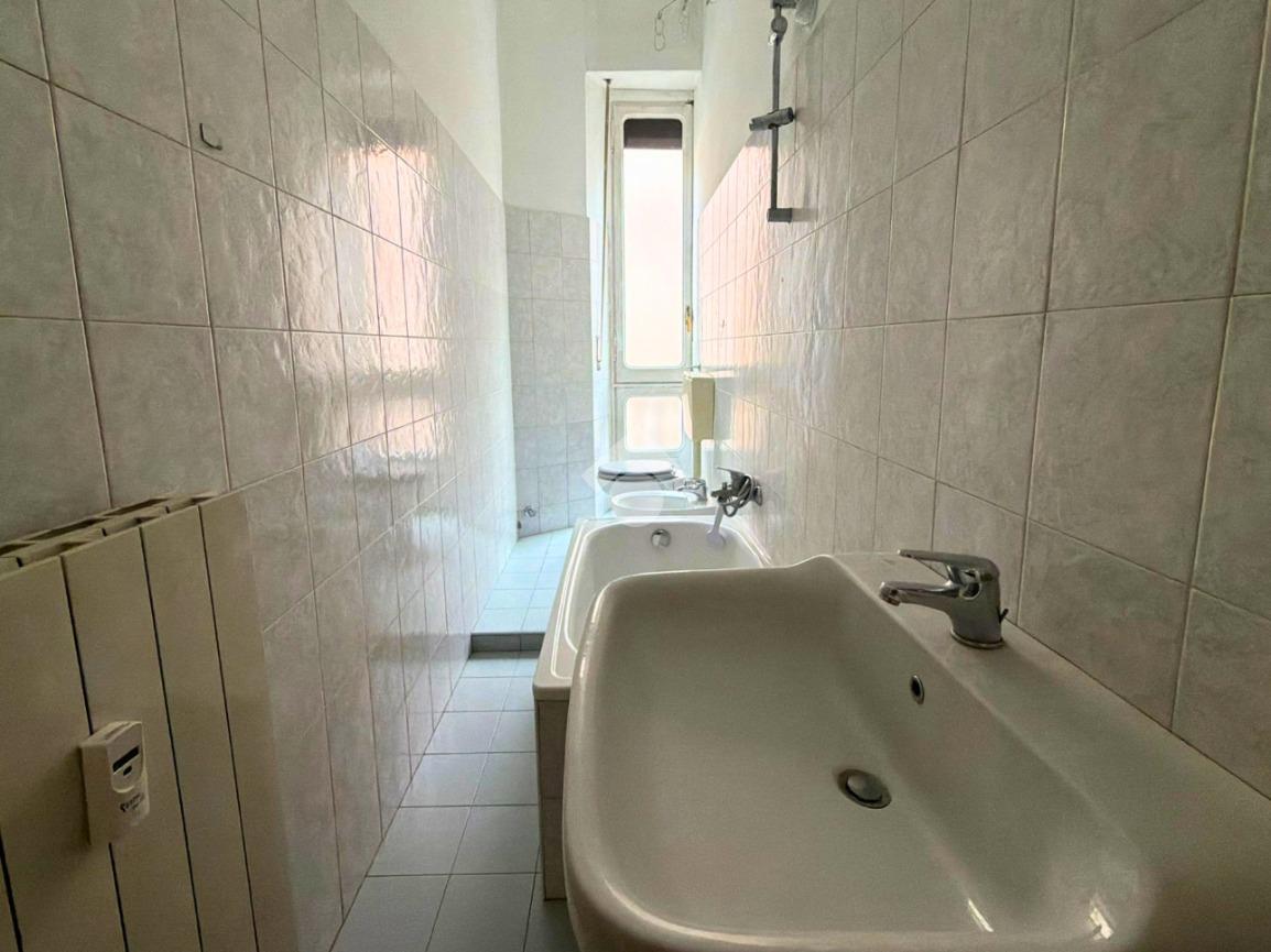 L’immobile si apre su un disimpegno che distribuisce in modo funzionale tutti gli ambienti e si compone di cucina, camera da letto e bagno dotato di vasca. Tutti i locali risultano particolarmente luminosi grazie alla presenza di ampie porte-finestre con accesso al balcone, affacciato sulla via principale, che garantisce una piacevole luminosità naturale durante tutta la giornata. Gli spazi interni conservano inoltre elementi originali, come le pavimentazioni, che donano carattere e personalità.