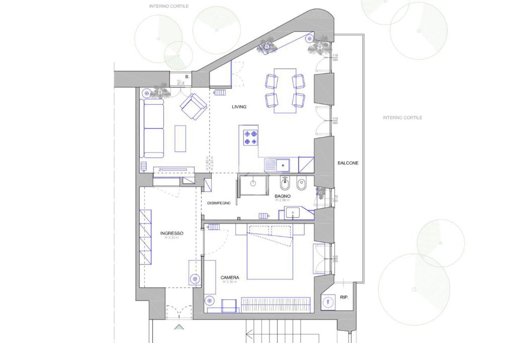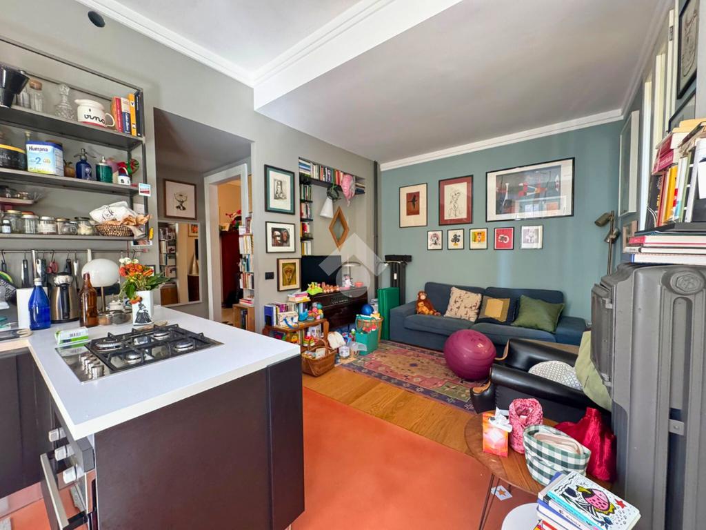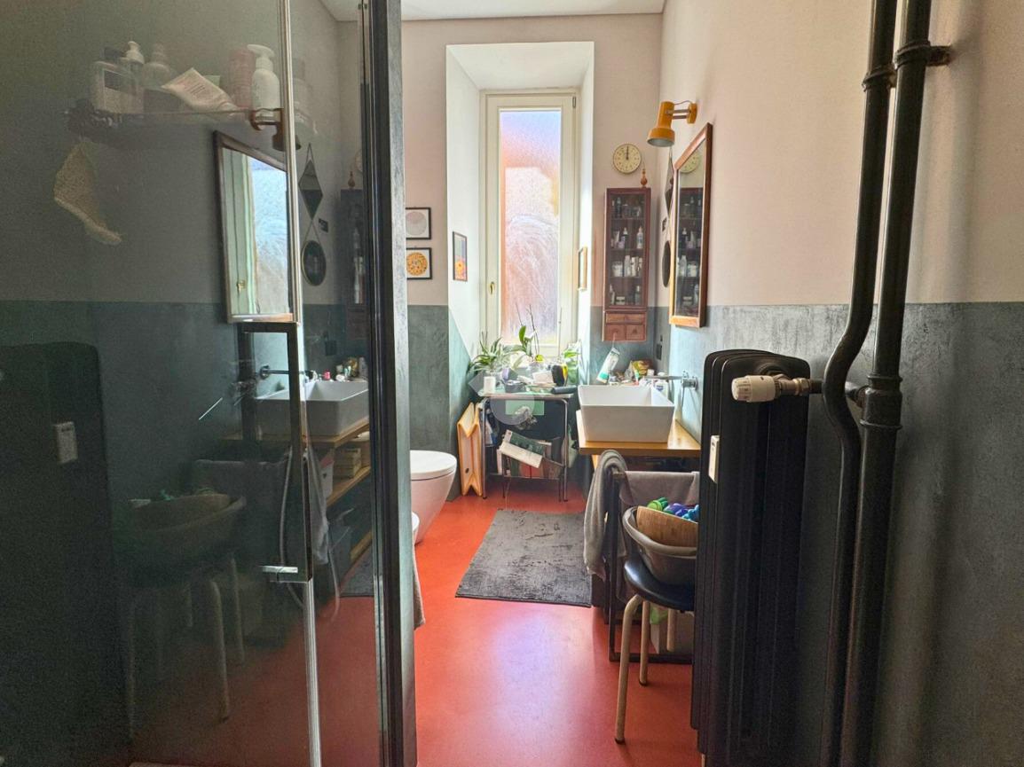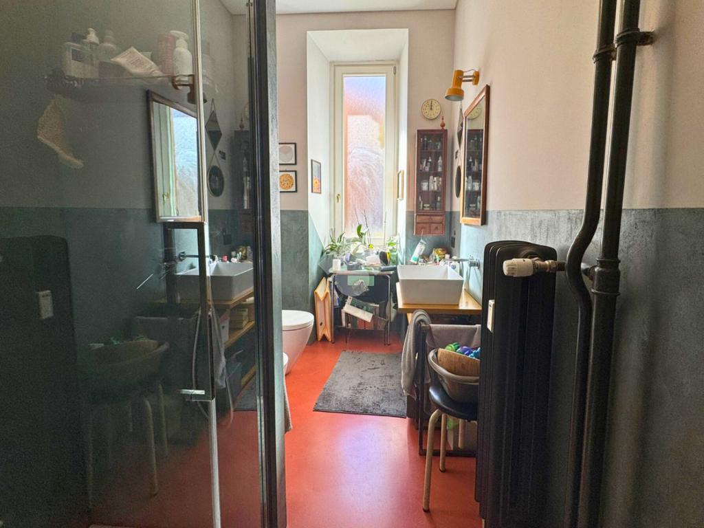 L’attuale distribuzione prevede due locali, ma l’appartamento si presta facilmente a essere riconvertito in trilocale, come in origine, aggiungendo una seconda camera o uno studio.