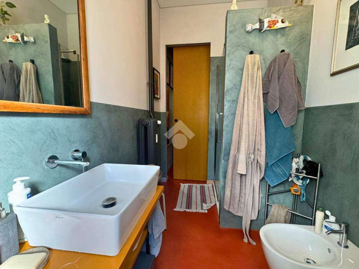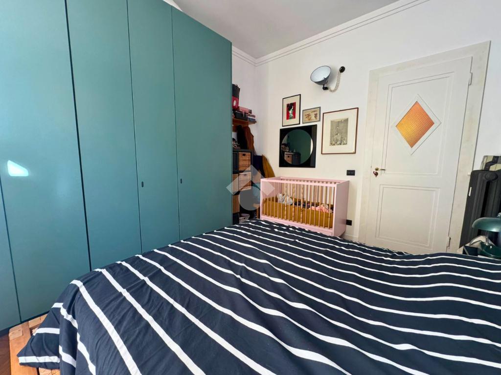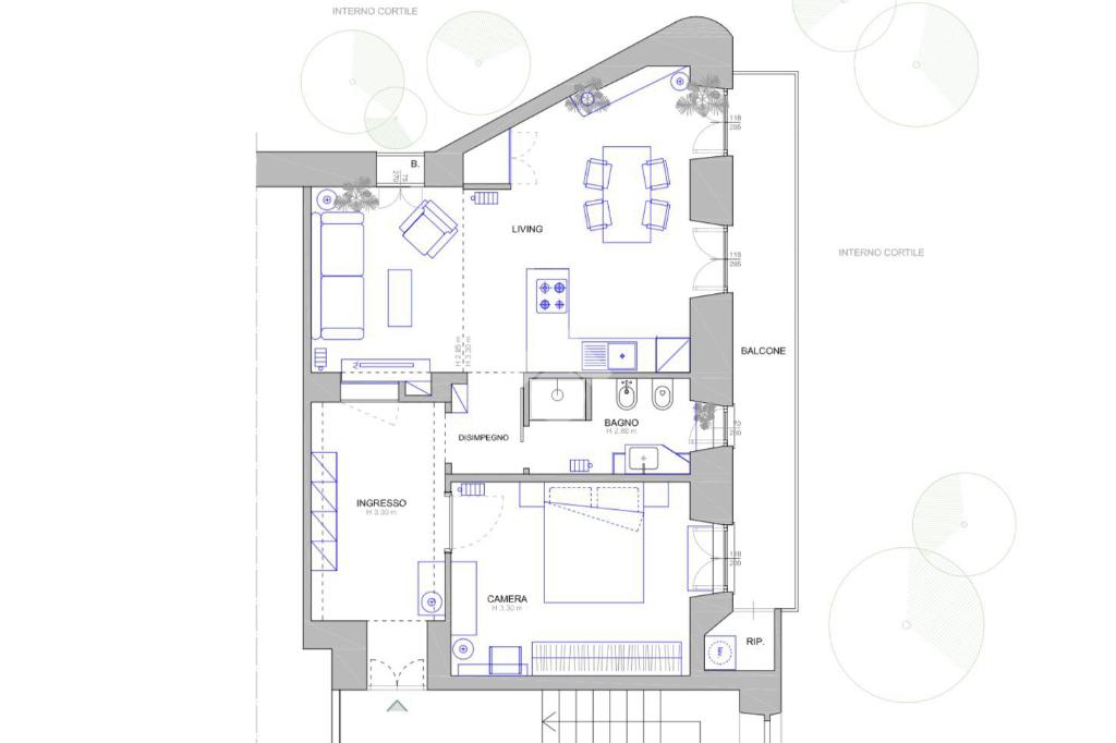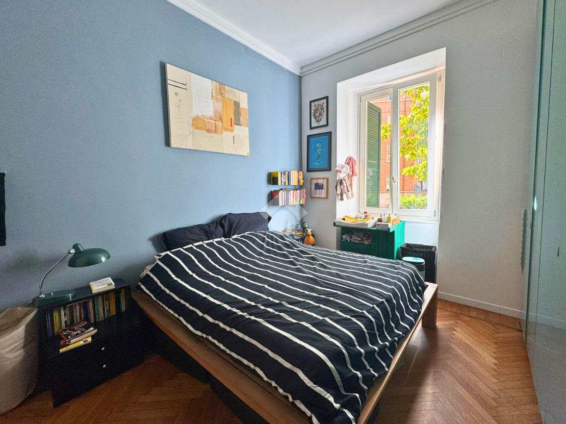 L’attuale distribuzione prevede due locali, ma l’appartamento si presta facilmente a essere riconvertito in trilocale, come in origine, aggiungendo una seconda camera o uno studio.