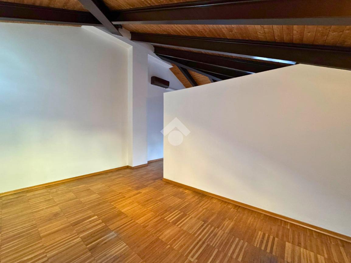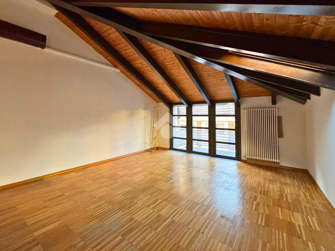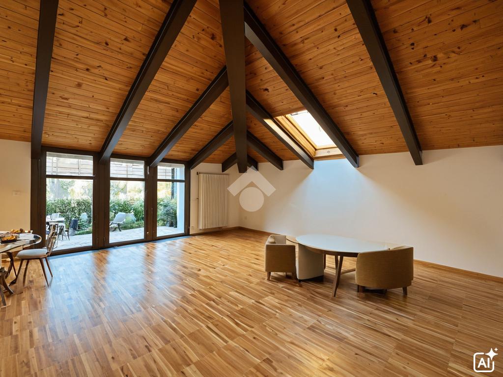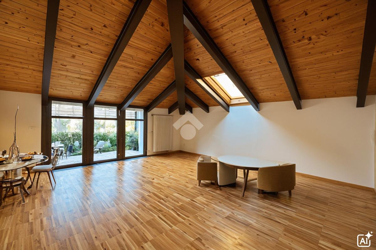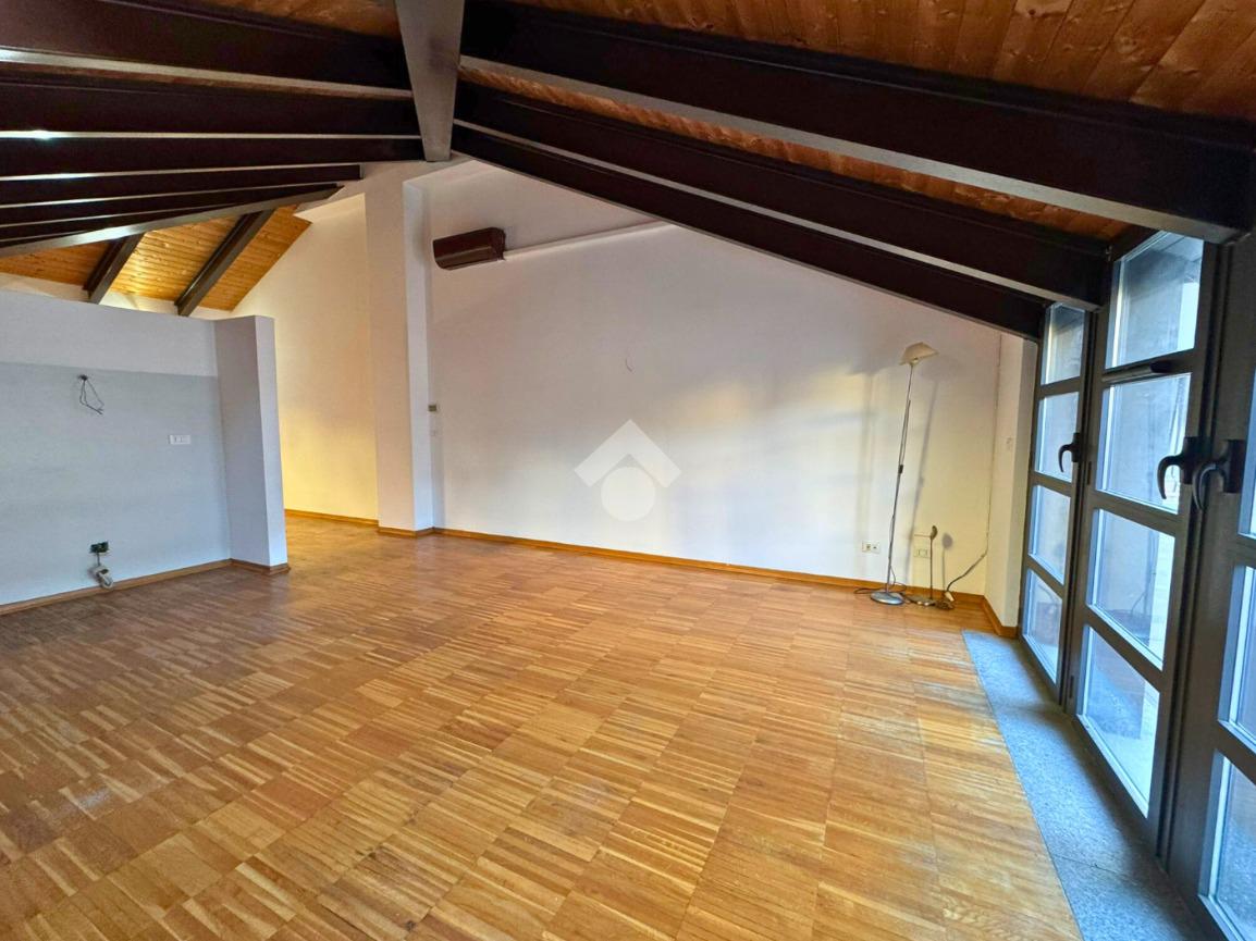 In Via Pinelli, all’interno di uno stabile moderno e ben curato del 2012 dotato di ascensore, luminoso loft situato al primo piano e ultimo, caratterizzato da soffitti alti con travi a vista in legno che donano calore e un tocco di design contemporaneo.