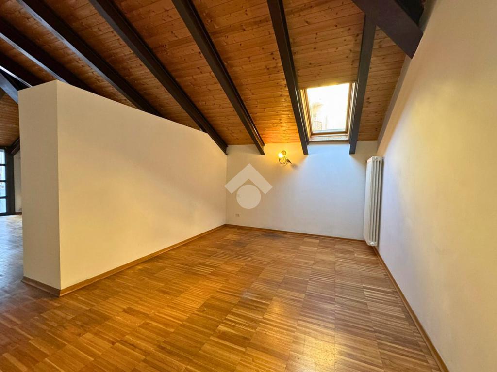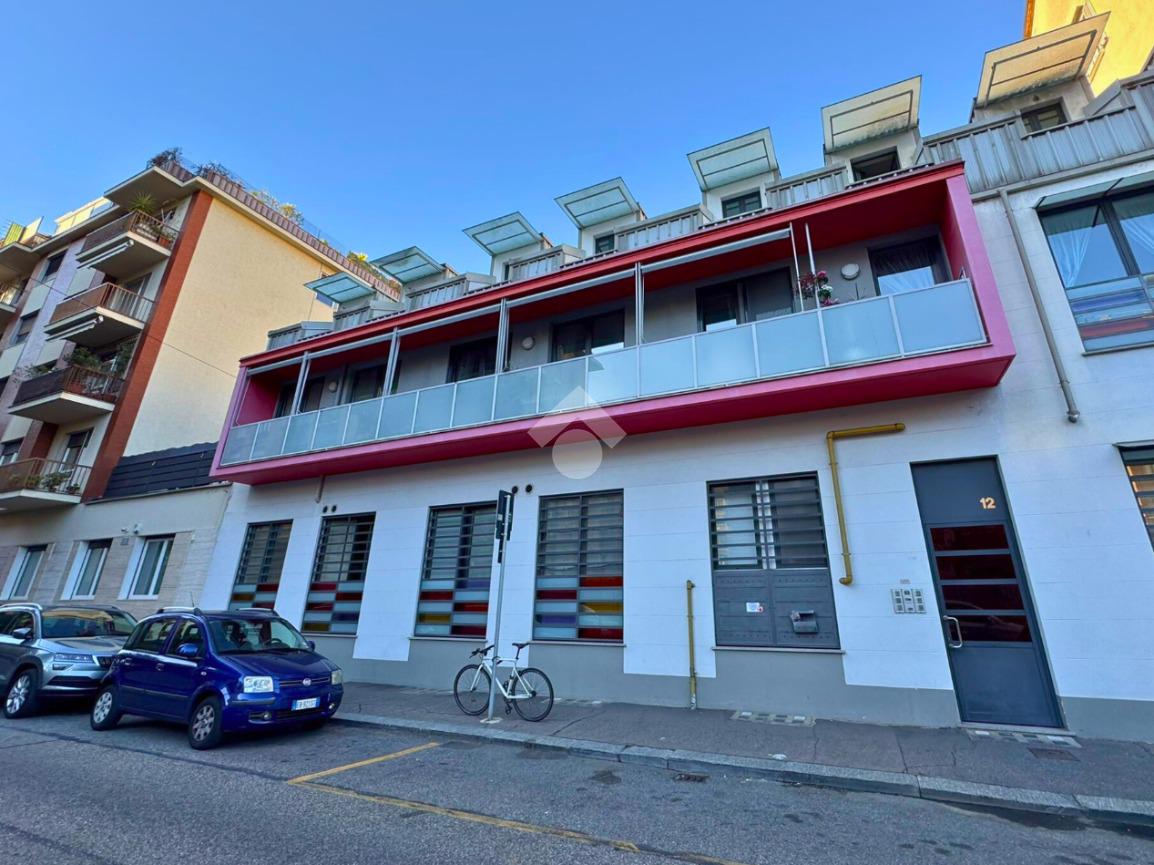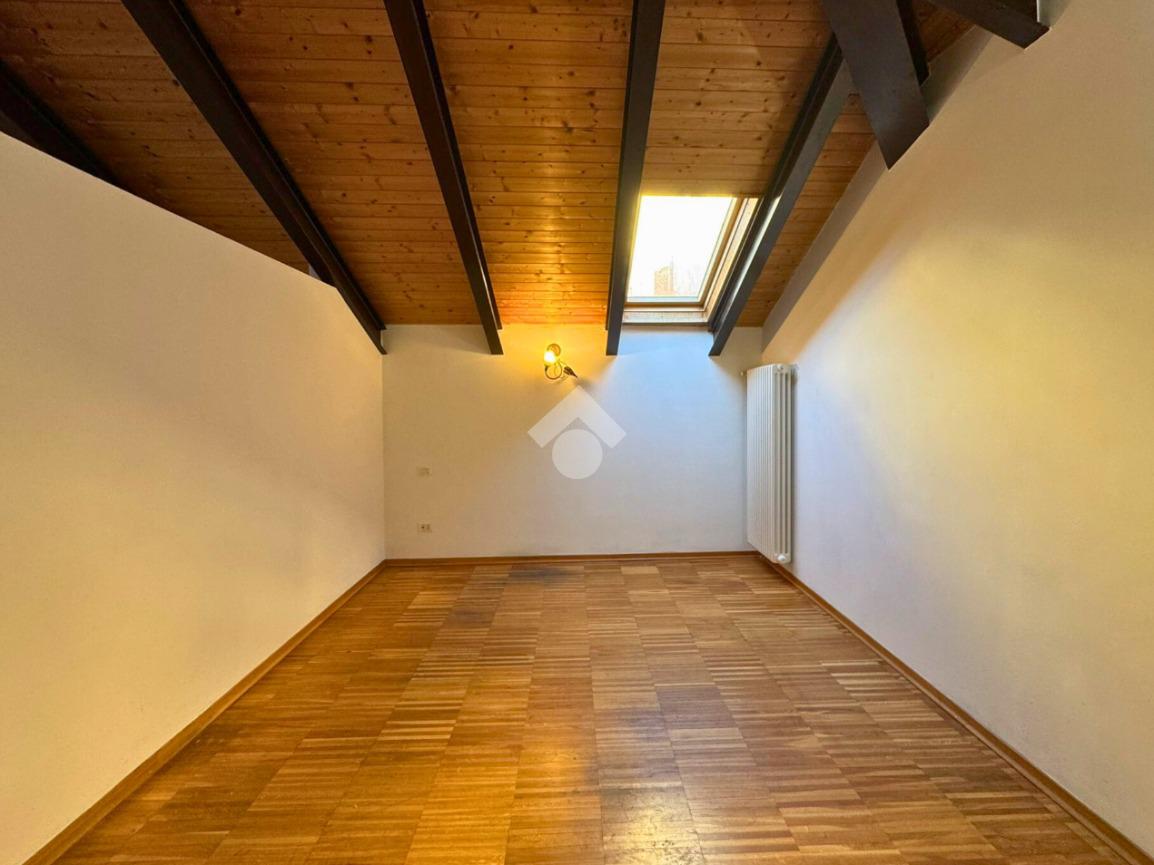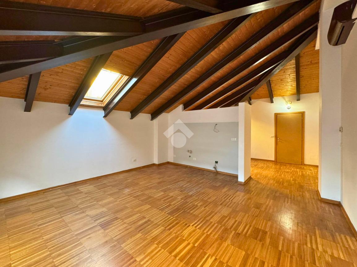 In Via Pinelli, all’interno di uno stabile moderno e ben curato del 2012 dotato di ascensore, luminoso loft situato al primo piano e ultimo, caratterizzato da soffitti alti con travi a vista in legno che donano calore e un tocco di design contemporaneo.