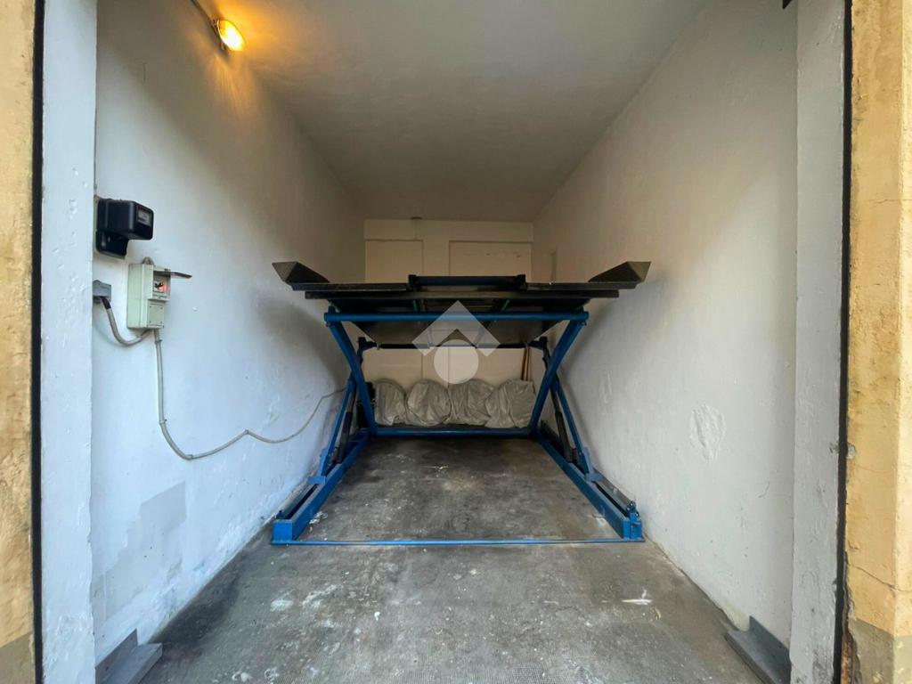 Ampio e funzionale, è dotato di ponte sollevatore che consente di ospitare fino a due auto. L’ingresso è pratico grazie al doppio portone manuale e alla serranda automatica con telecomando.